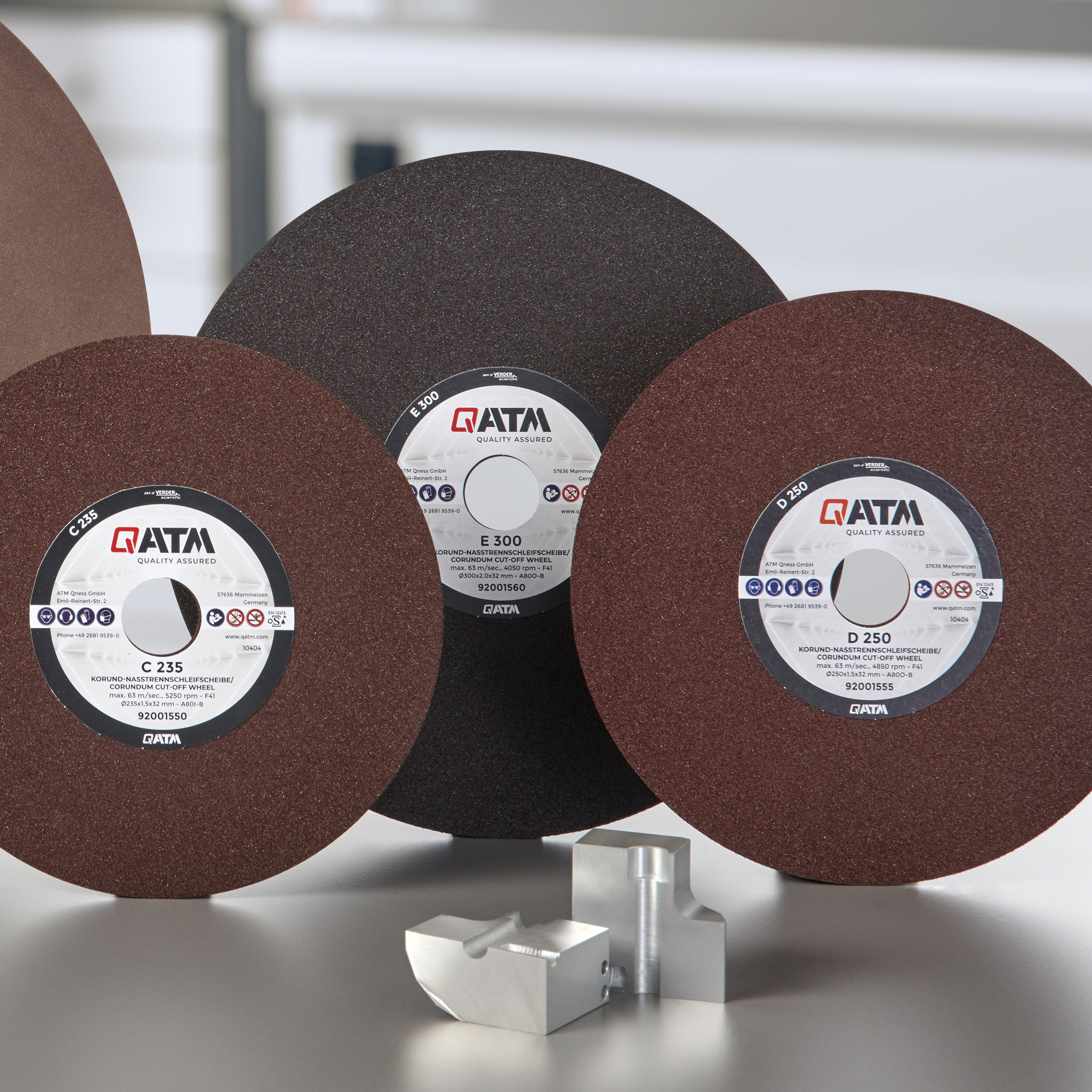 The process of cutting, specifically wet abrasive cutting, is essential for materialographic sectioning of samples. In this process, cut-off wheels of different material thicknesses, abrasive particles and bonds are used on a corresponding wet abrasive cutting machine. These bond types can be synthetic resin, rubber, or metal. For the abrasives, aluminum oxide, silicon carbide, diamond or CBN is used. These abrasive particles are enclosed in a bond matrix.